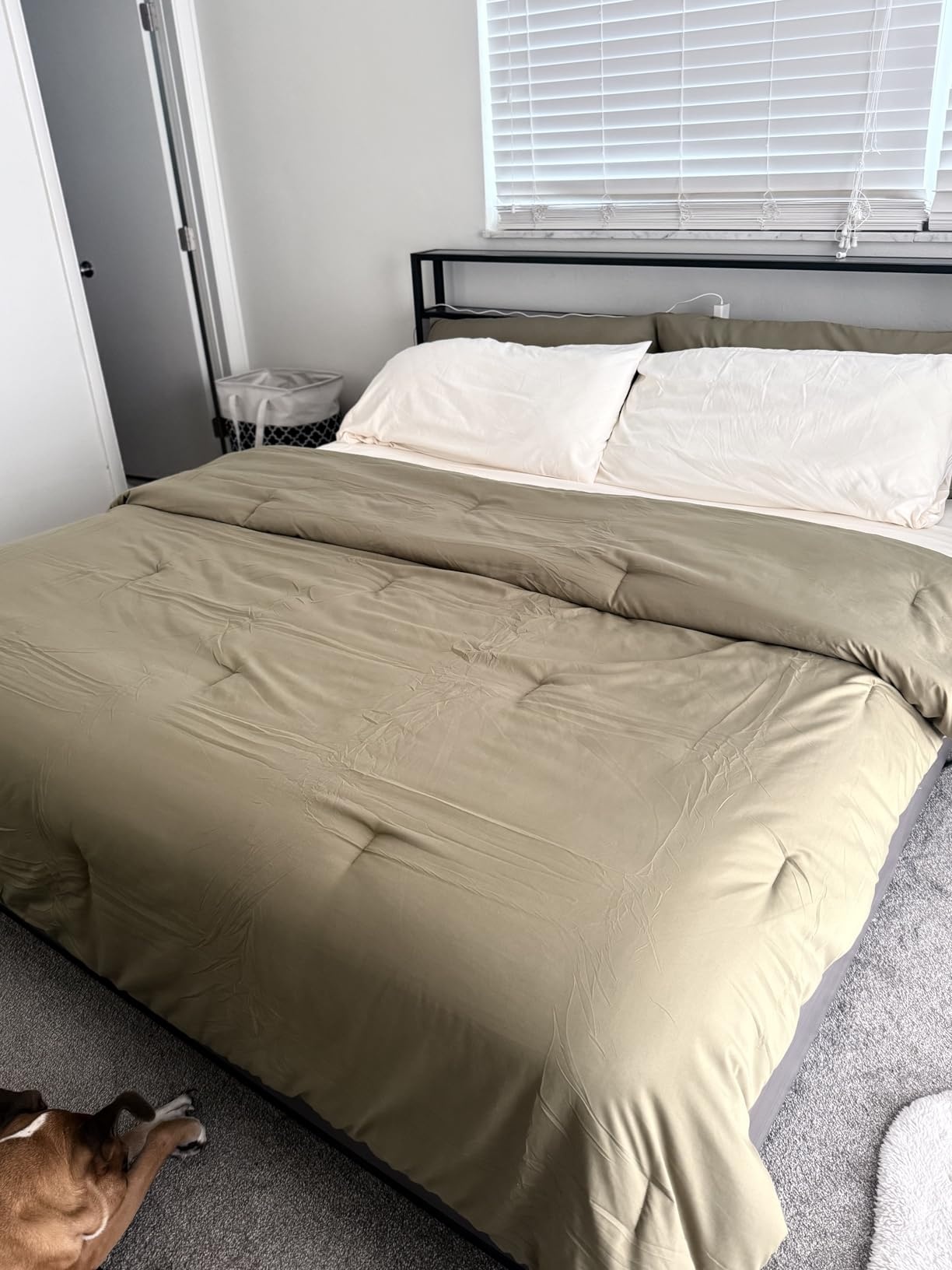 The King Size Olive Green Set is perfect for our master bed – fluffy fill keeps us cozy, and the wide coverage fits nicely. Boho olive tone blends with our neutral décor. Pillowcases are soft and substantial. Great quality – highly recommend for a relaxed, stylish bedroom update!